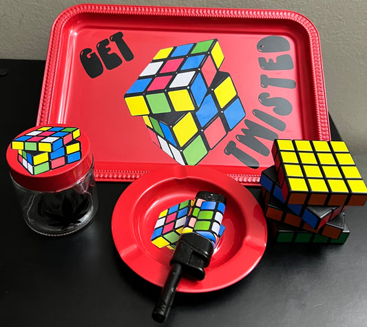 Red Get Twisted Rolling Tray Set