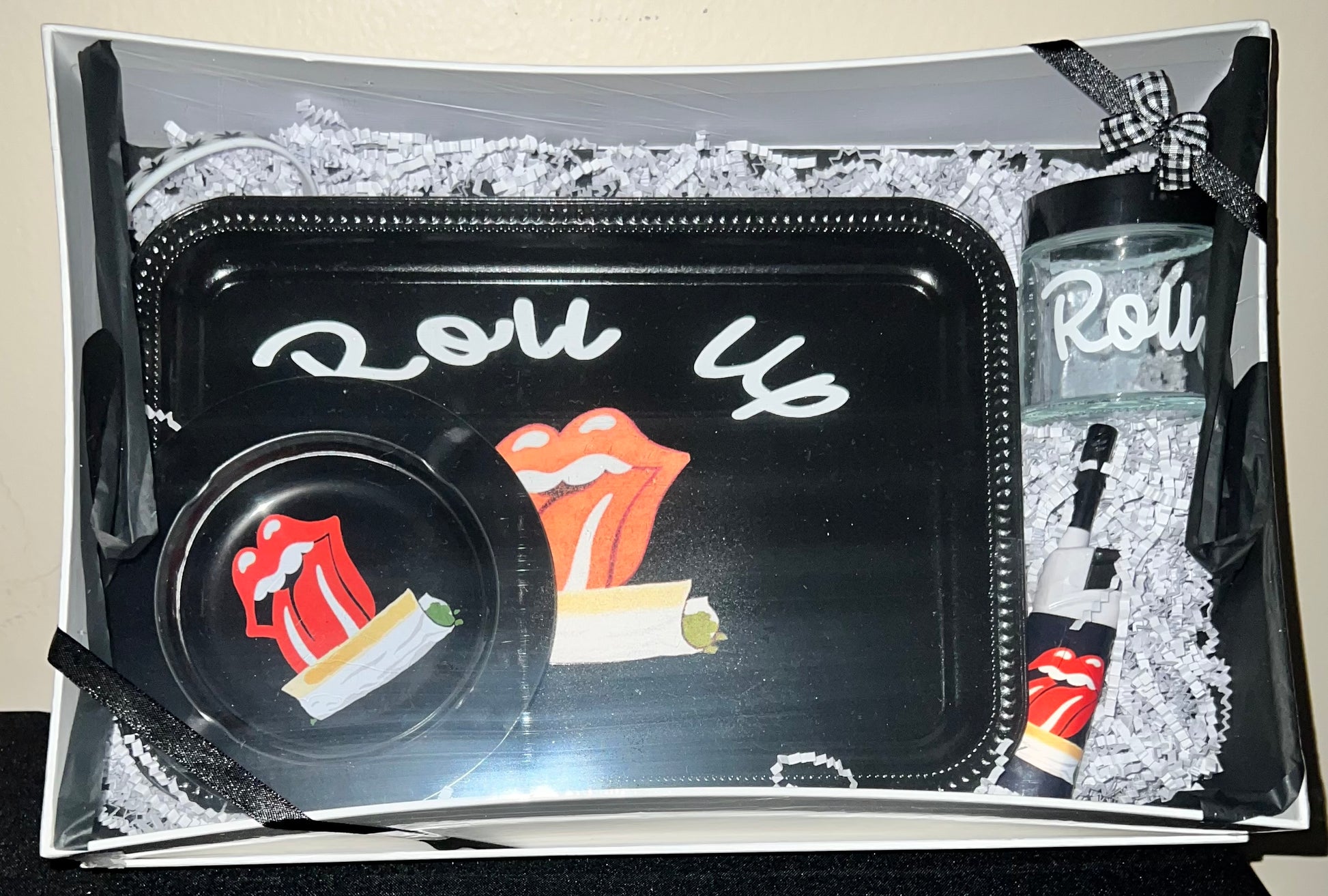 Rolling Tray, stash jar, lighter, ashtray